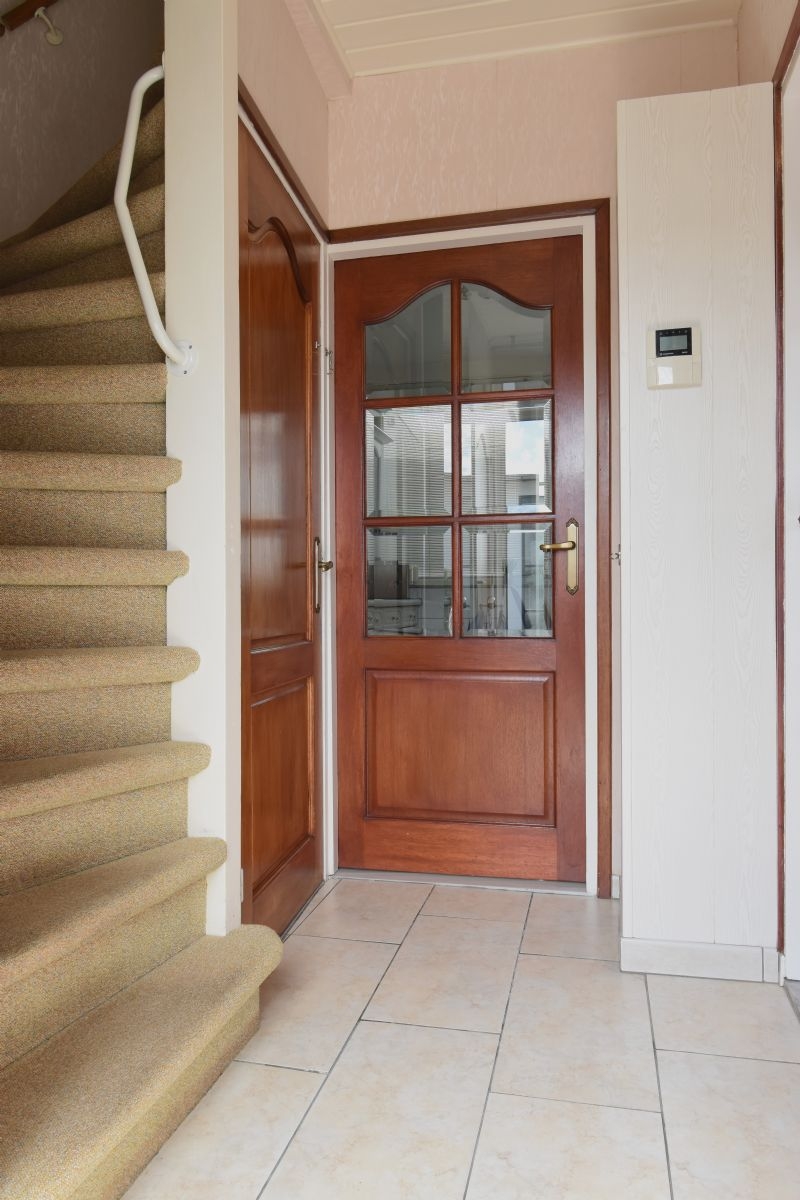 Entree, hal, 2.95 x 1.20, meterkast, garderobe, trap naar kelder en trap naar 1e verdieping.