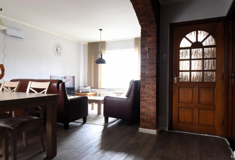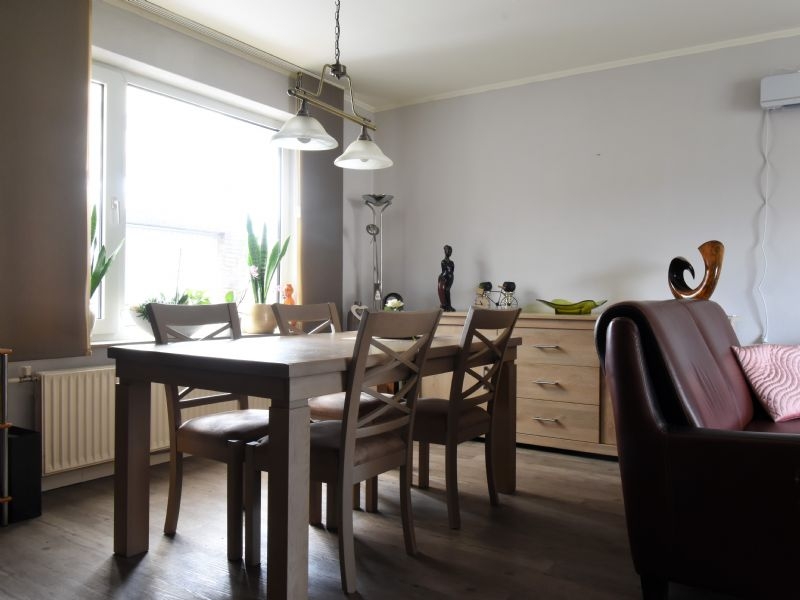 Via de hal komt men in de woonkamer. De L-vormige woonkamer, 6.50 x 3.70/3.46 x 2.46 is v.v. een pvc-vloer.