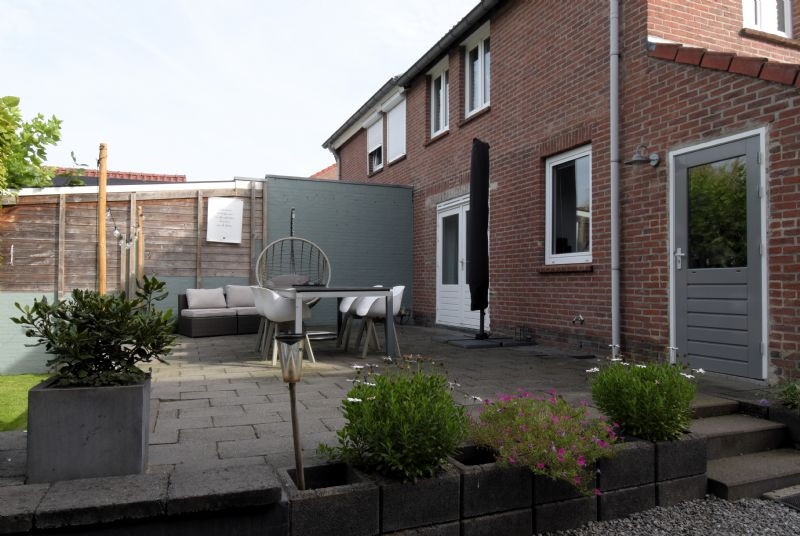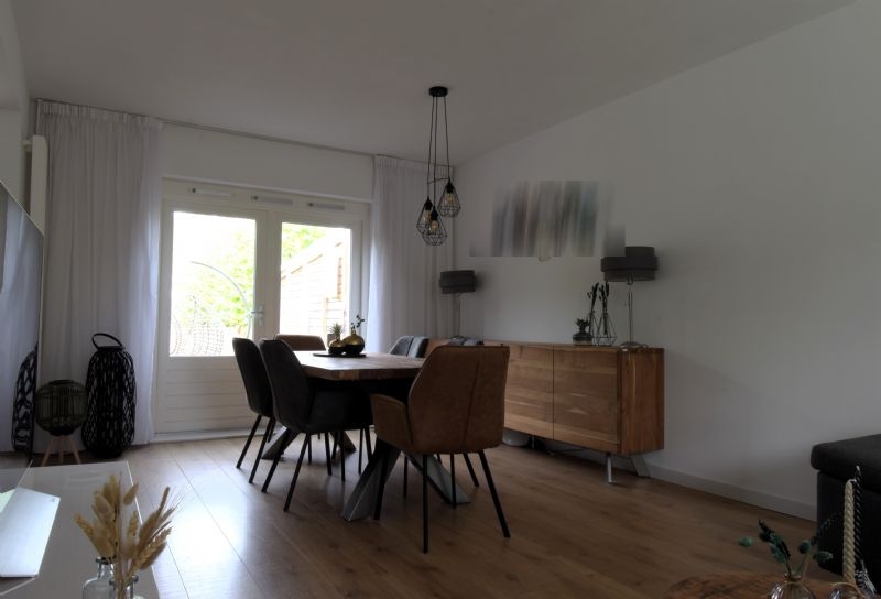 Via de openslaande tuindeuren, is er direct contact met het terras in de achtertuin.