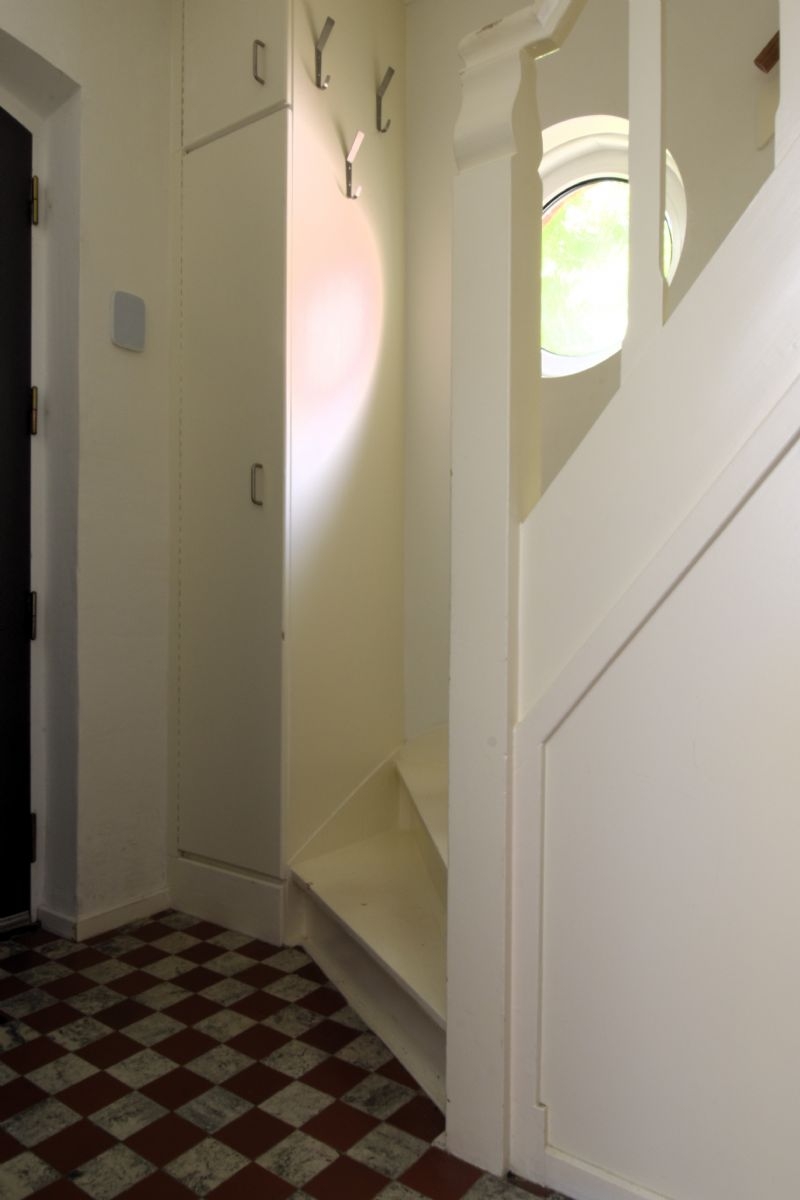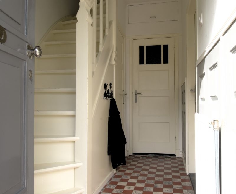 Entree, hal, 3.30 x 1.00, zwevend toilet met fonteintje, meterkast, garderobe, trap naar kelder en trap naar 1e verdieping.